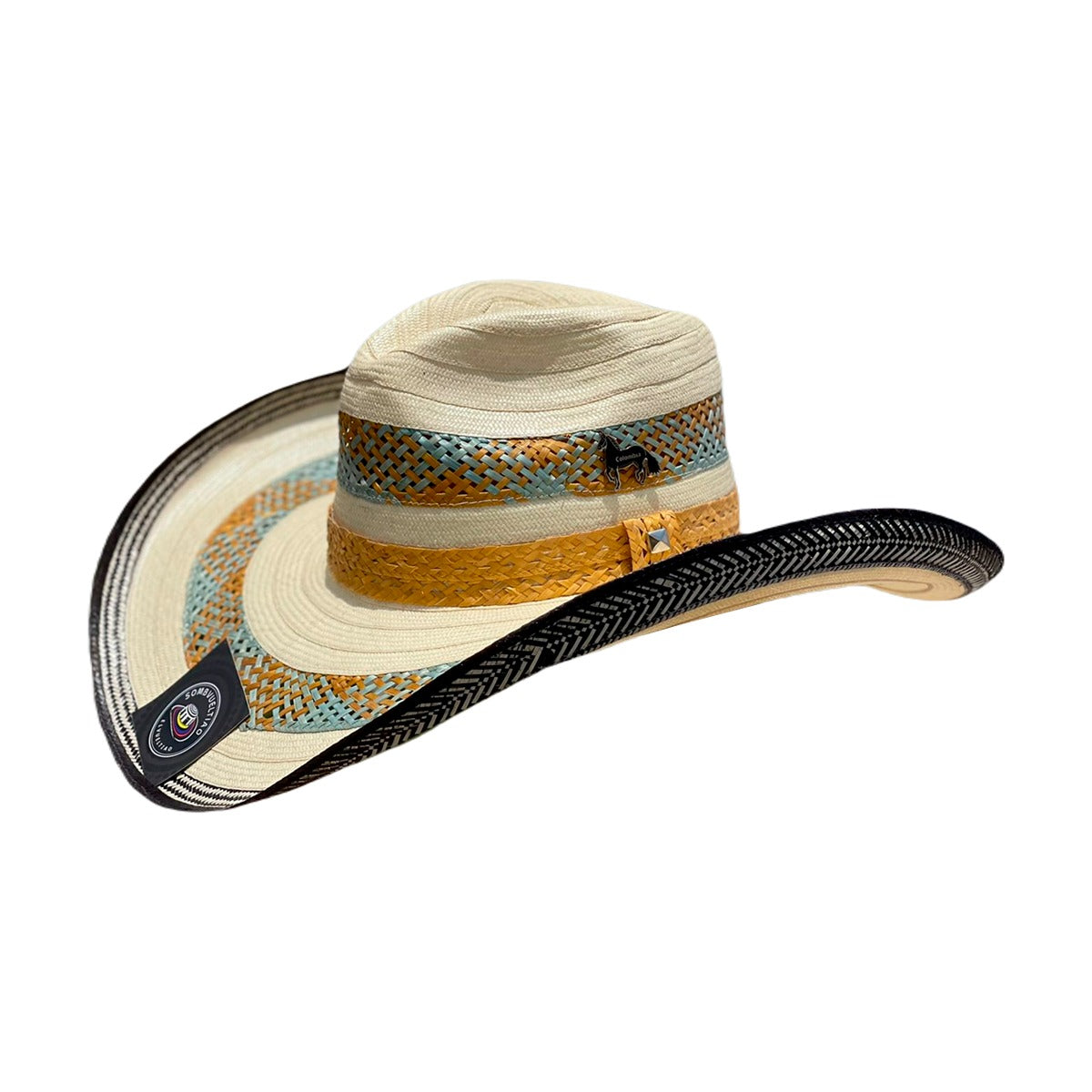 Sombrero 27 fibras Extrafino Calidad a Mano Blanco con Diseño de dos colores